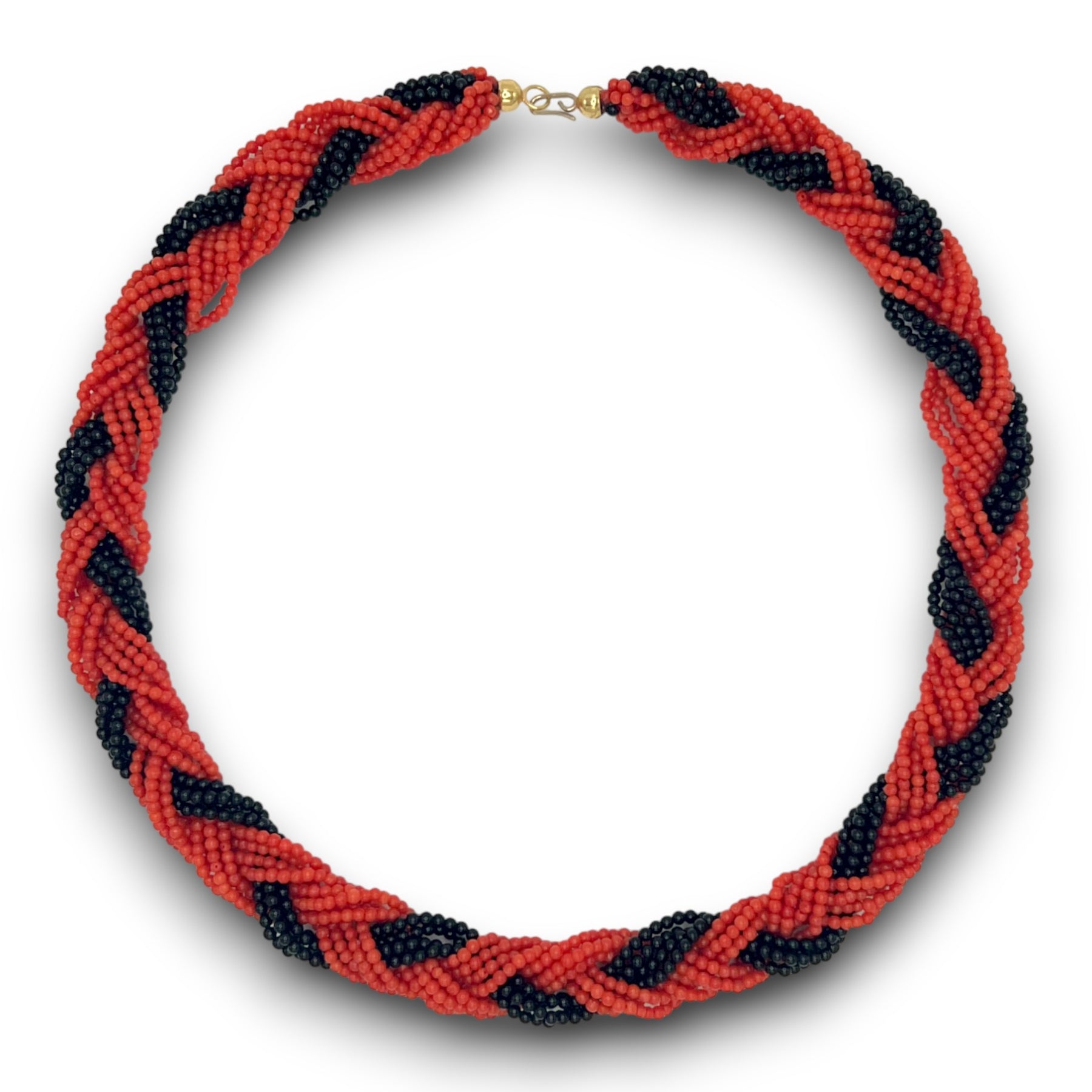 The Maranello Mediterranean Coral and Black Onyx Necklace - Coralina